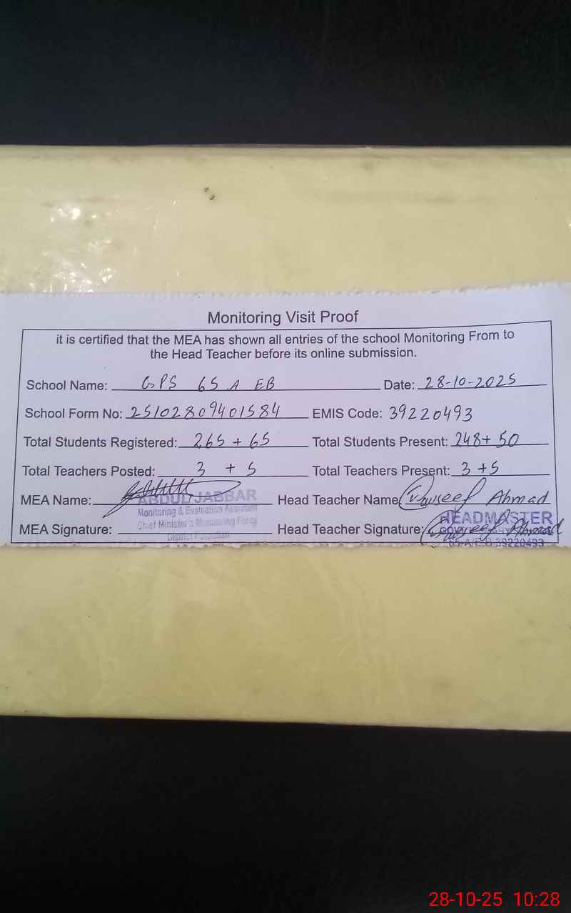 | EMIS Code: 39220493 | Name of School: GPS 65-A/EB | |||