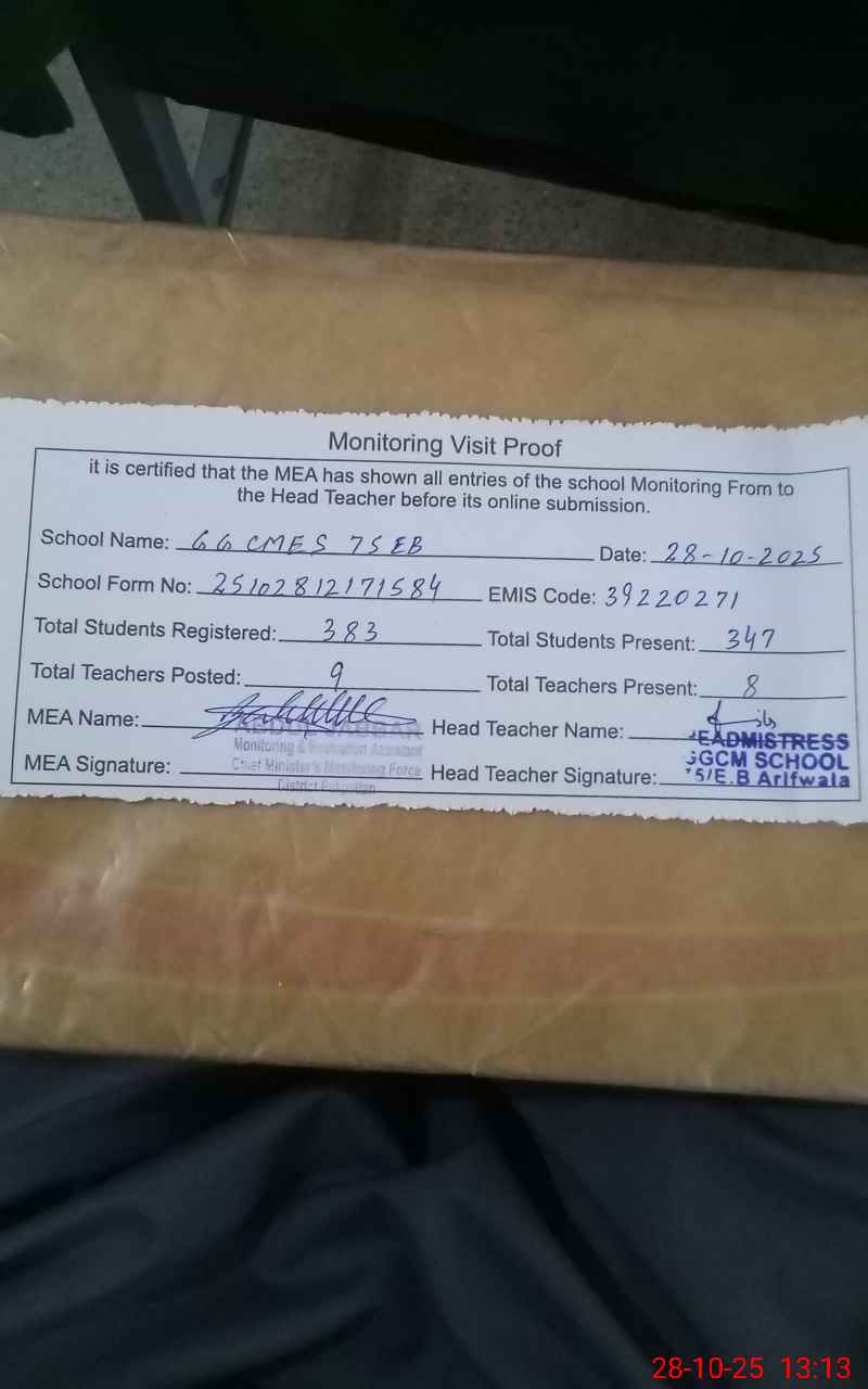 | EMIS Code: 39220271 | Name of School: GGCMES 75 EB | |||