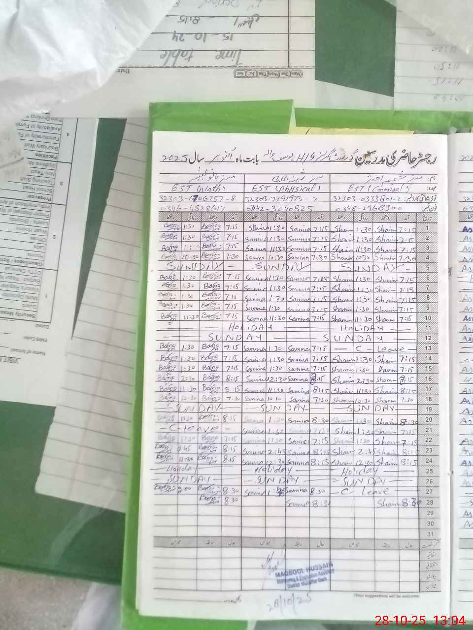 | Name: As**** Na**** Designation: (School Headmaster's/Headmistress's) S ST PHY/Math Phone/Cell Number: 03**** |