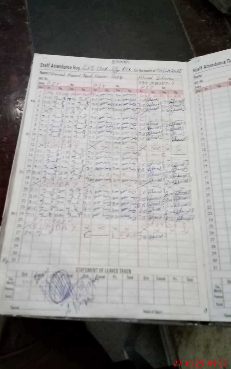 | Name: Mu**** Ma**** Iq**** Designation: (School Headmaster's/Headmistress's) PST Phone/Cell Number: 03**** |