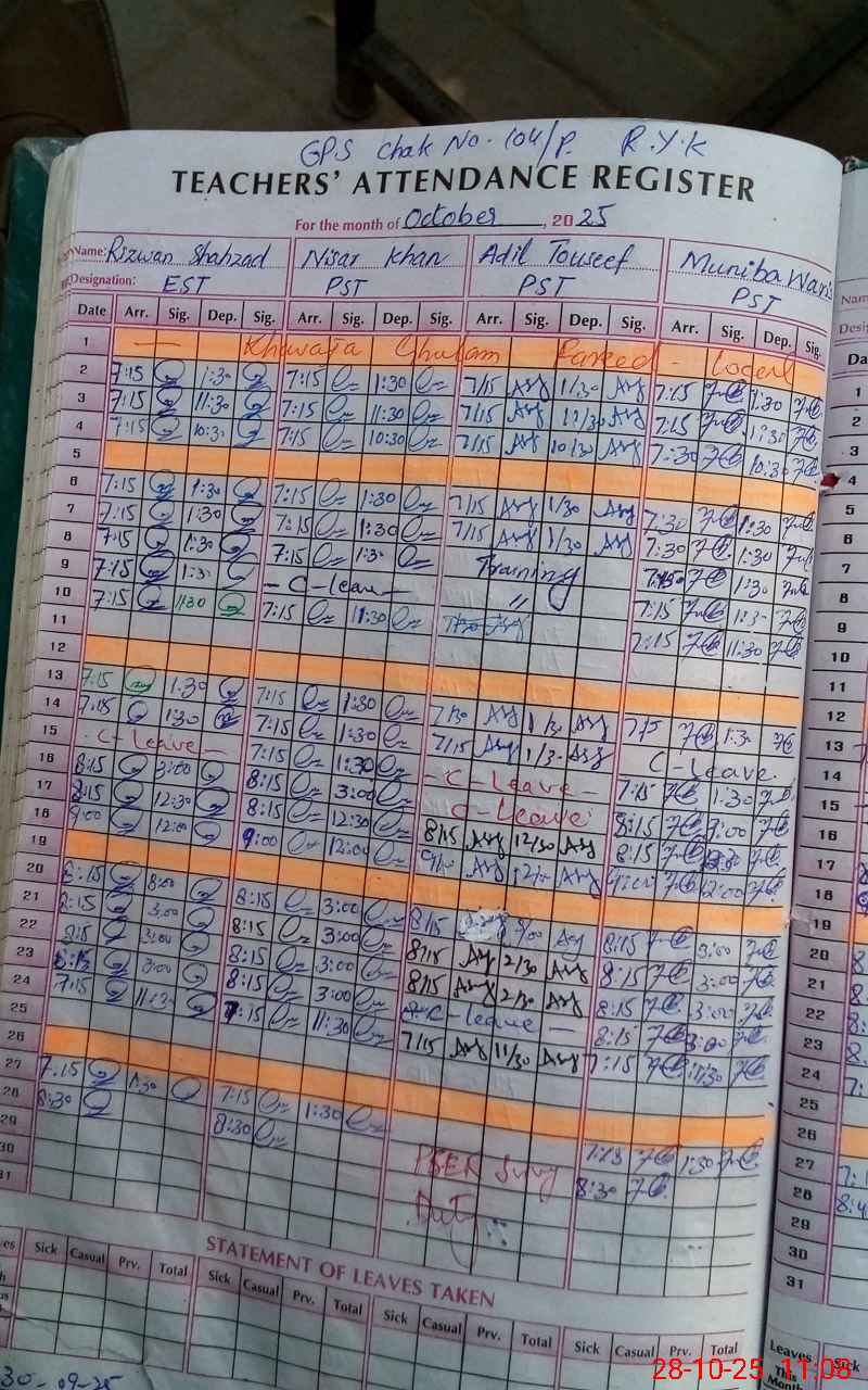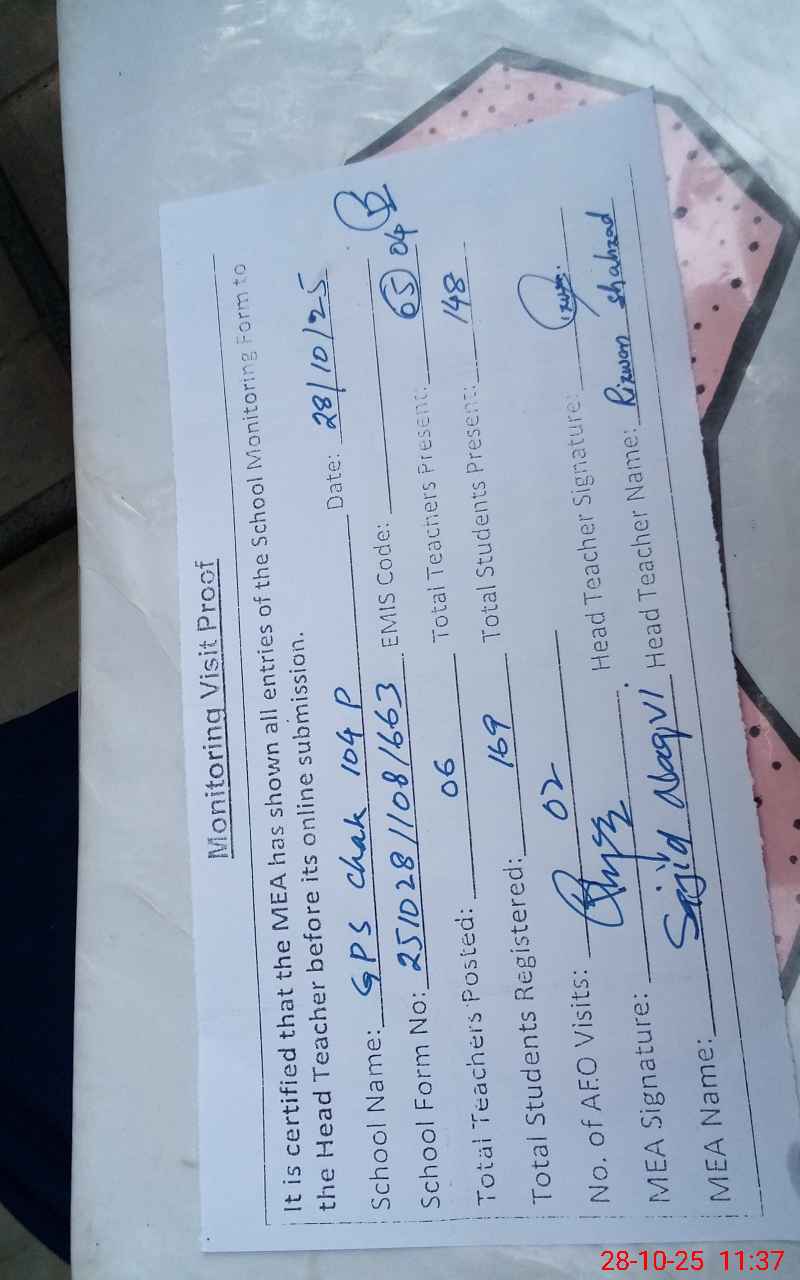 | EMIS Code: 31330261 | Name of School: GPS CHAK NO. 104/P | |||