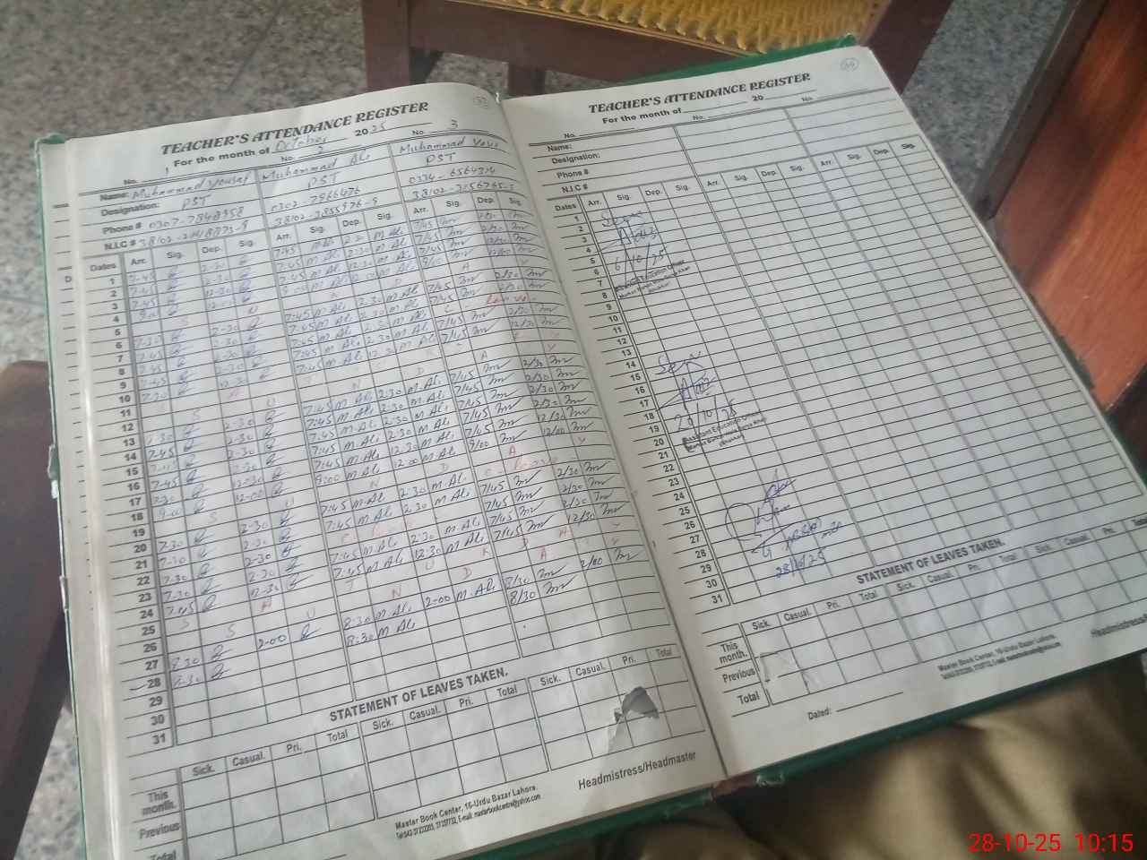 | Name: MU**** YO**** Designation: (School Headmaster's/Headmistress's) PST Phone/Cell Number: 03**** |