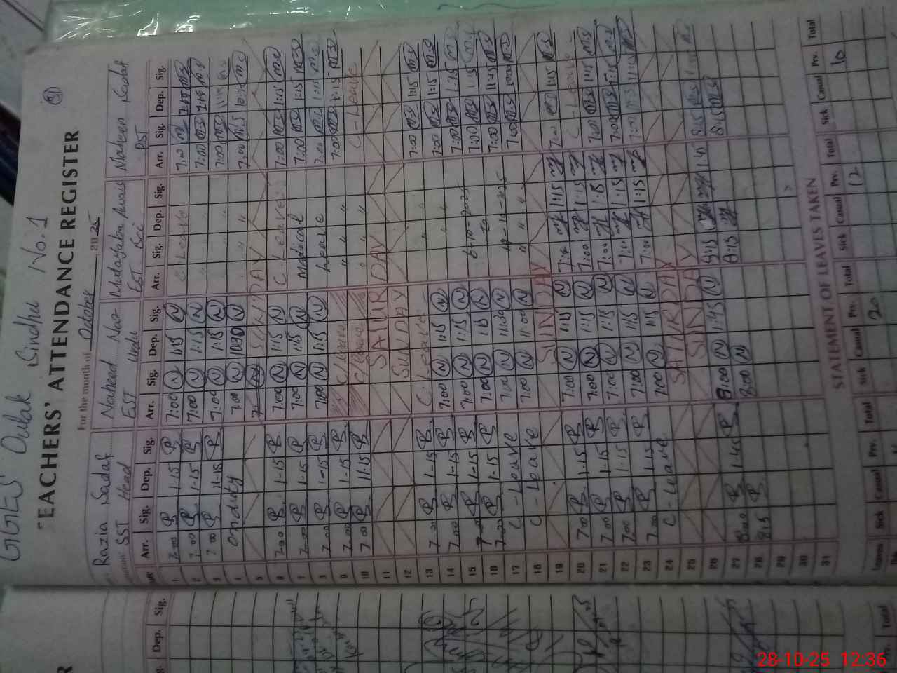 | Leave | Duty | Absent | Maternity | Medical | Ex- Pak |