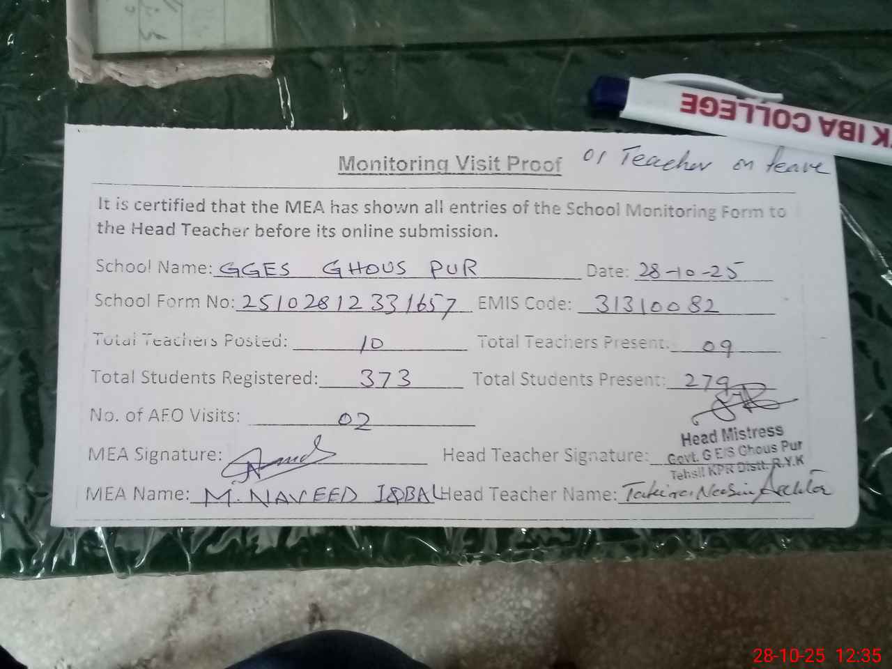 | EMIS Code: 31310082 | Name of School: GGES GHOUS PUR | |||