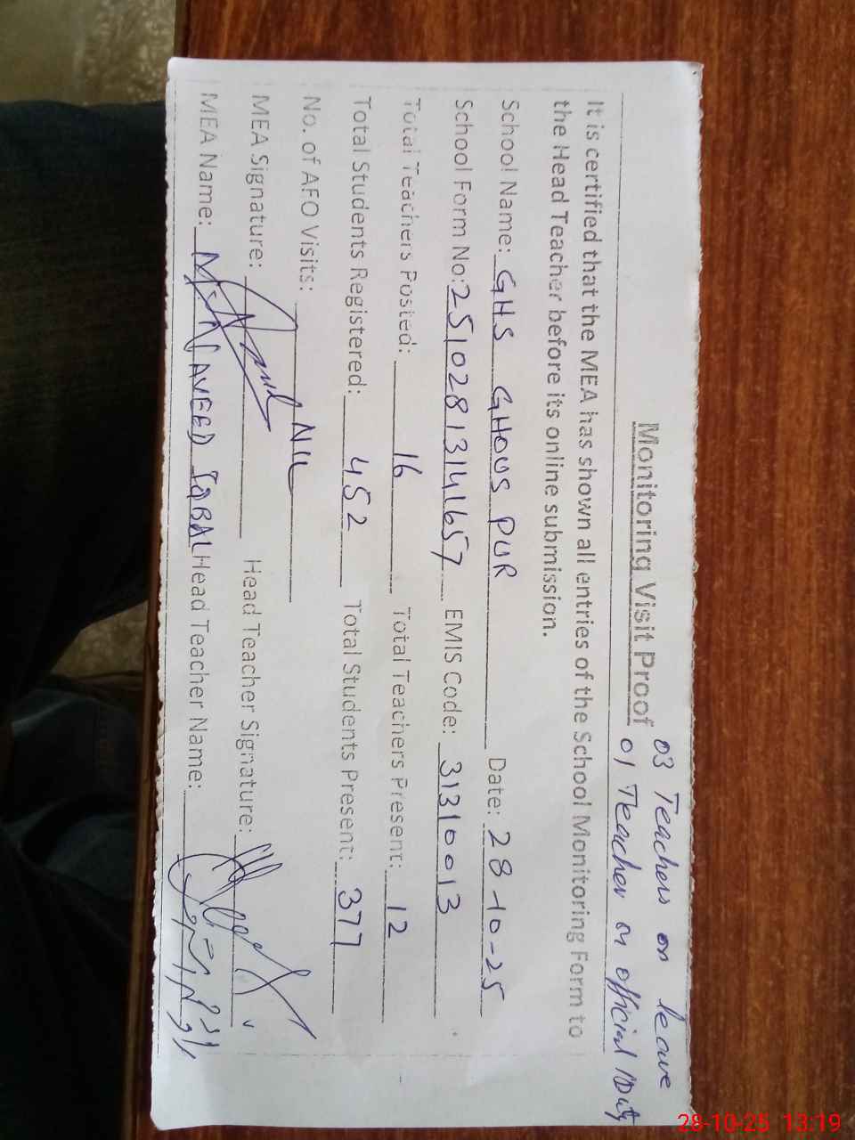 | EMIS Code: 31310013 | Name of School: GHS GHOUS PUR | |||
