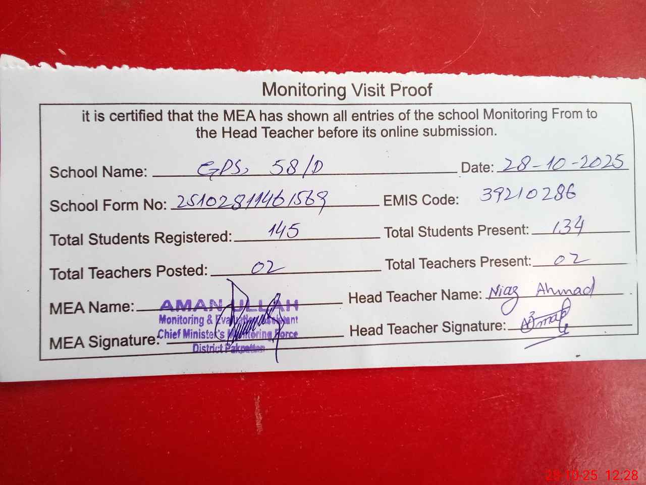 | EMIS Code: 39210286 | Name of School: GPS 58/D | |||