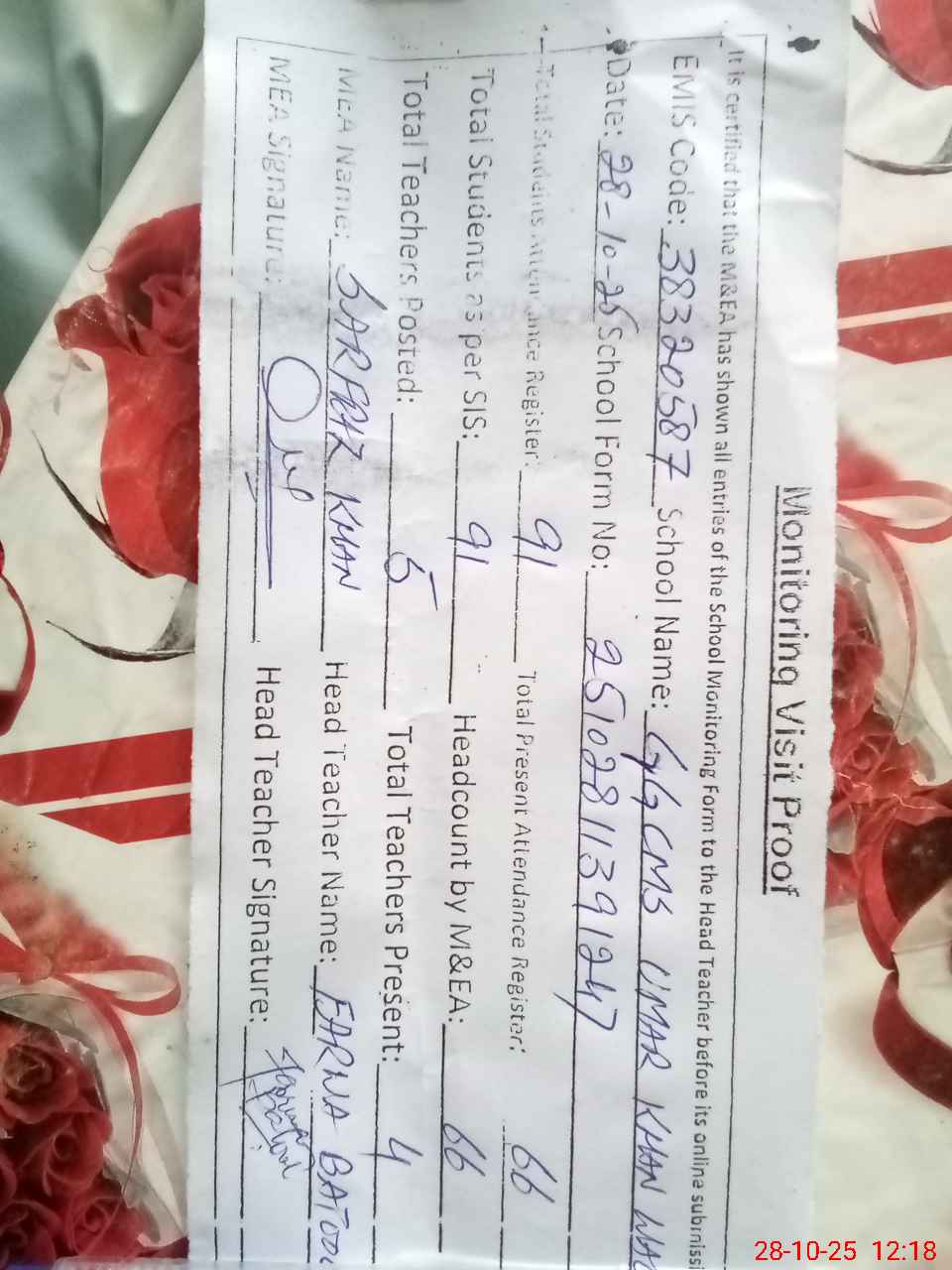 | EMIS Code: 38320587 | Name of School: GGCMS UMAR KHAN WALA | |||