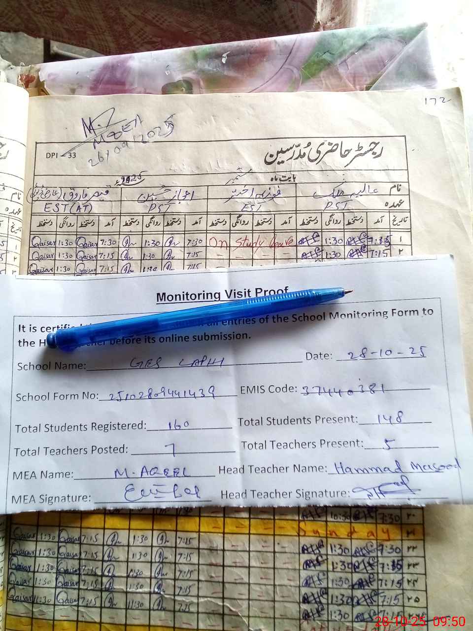 | Attendance Register | Head Teacher | MEA with School | Visit Proof |