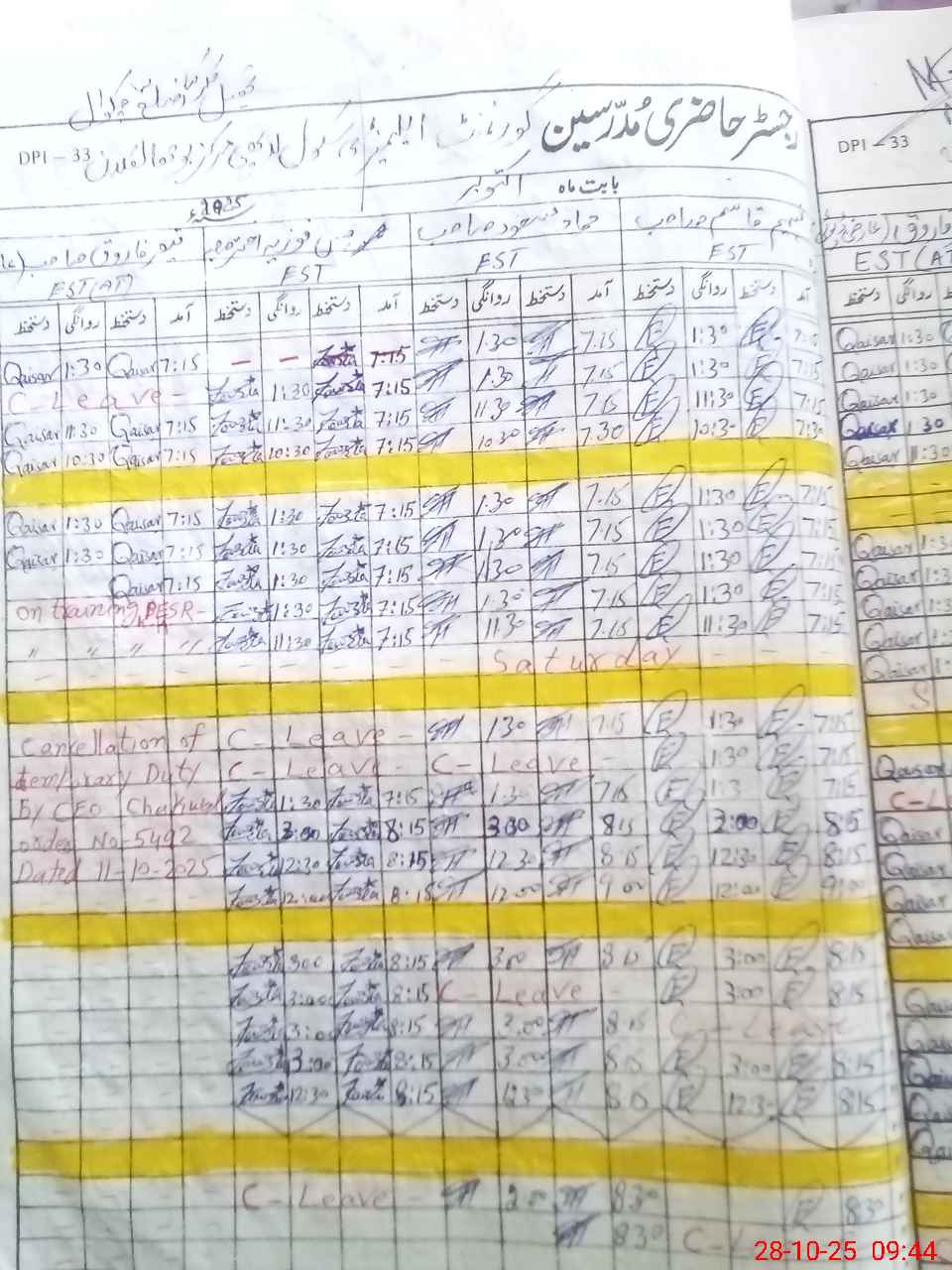 | Remarks (Use Separate Page if Required): Head teacher leave applied but not approved by higher authority and teacher fozia was absent | |||||