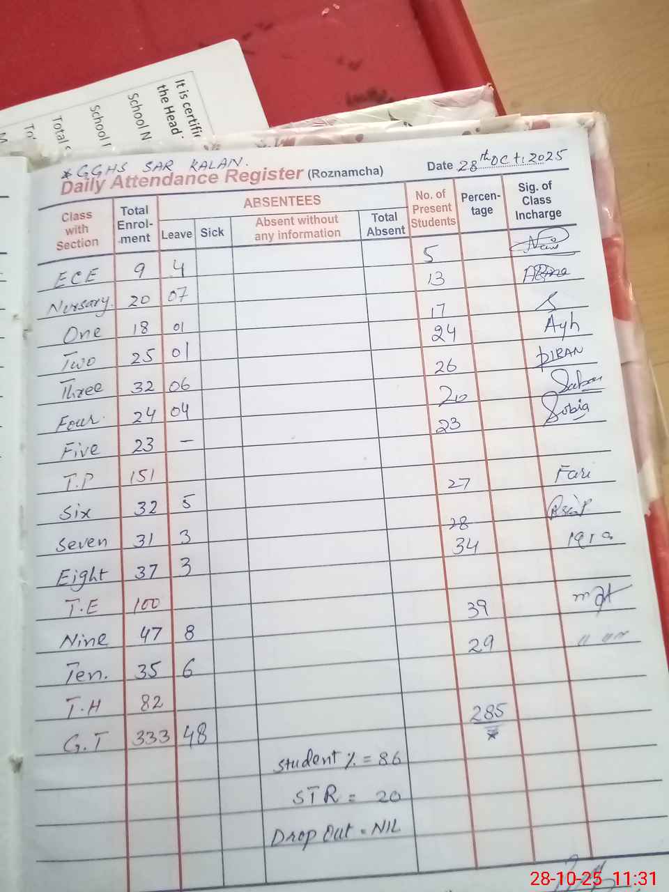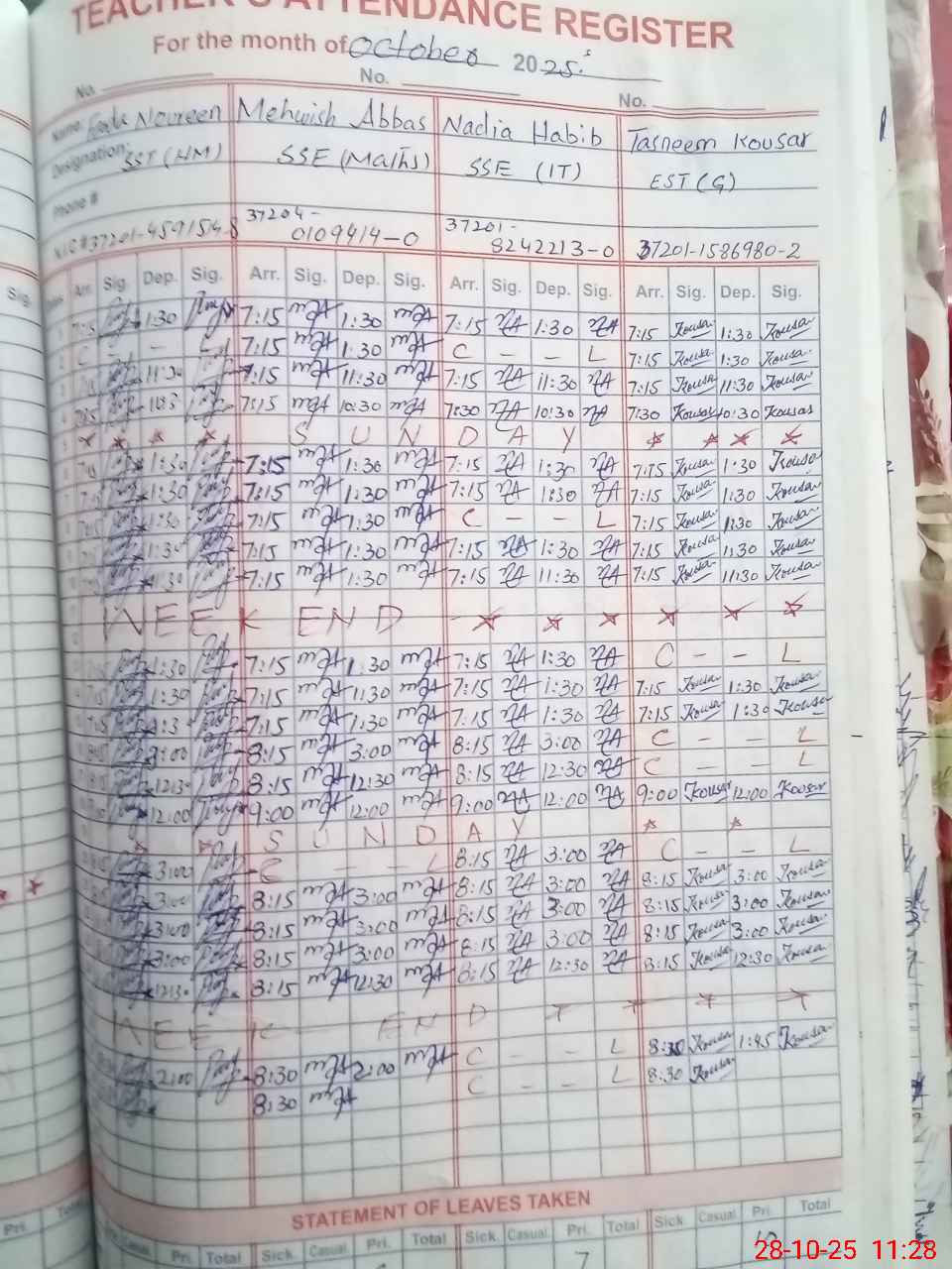 | 37**** | Aa**** Ya**** | 3 | 1 | 0 | 0 | 0 | 0 | 0 | 0 | 0 | 0 | 0 | Absent (Un-Authorized) |