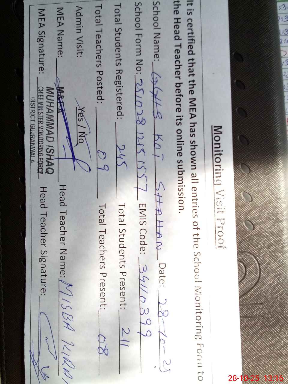 | EMIS Code: 34110399 | Name of School: GGHS KOT SHAHAN | |||