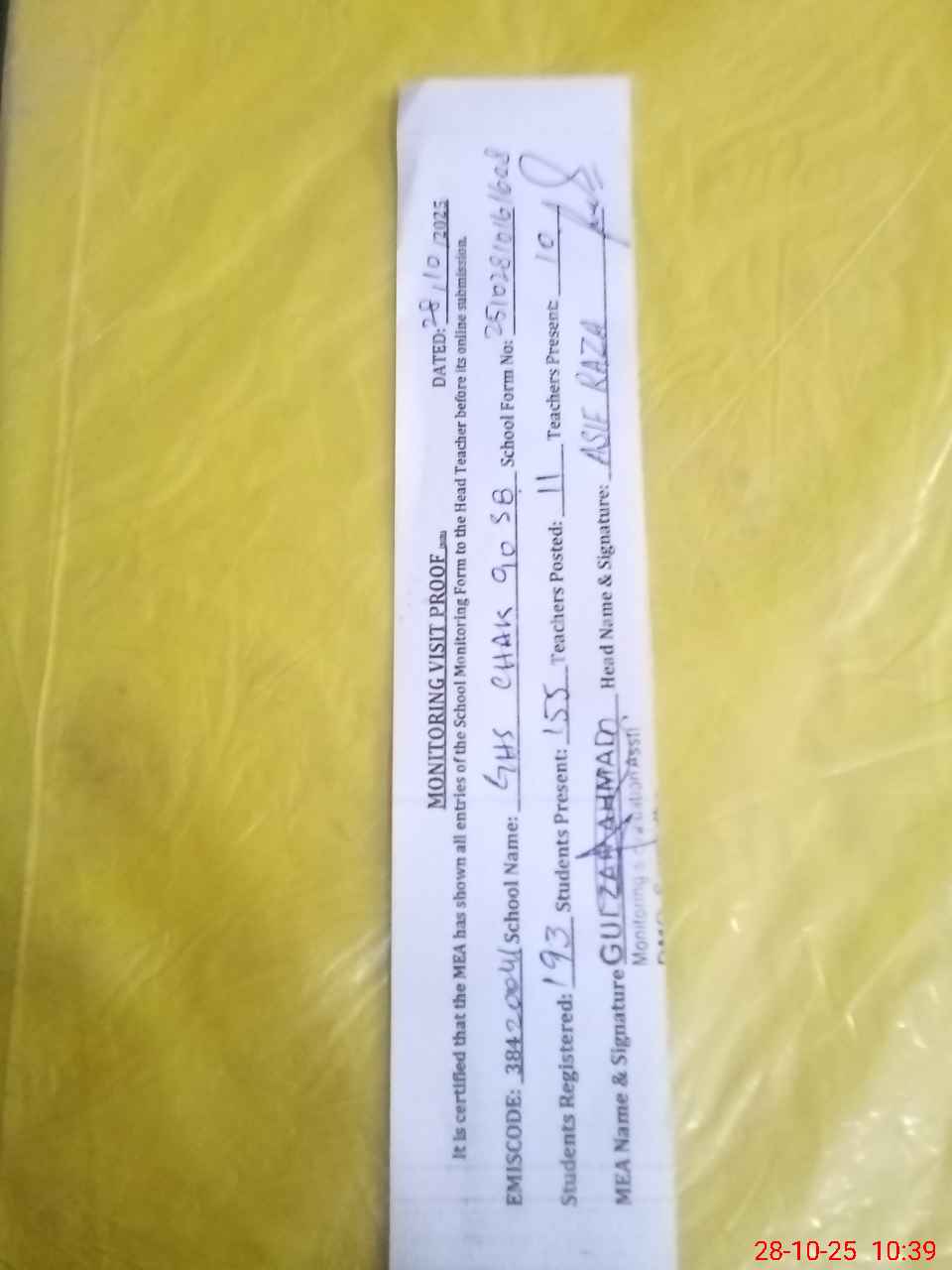 | Certified that this School was Inspected by the Undersigned MEA/DMO Today and the Information Stated Above is as Per Record. | |||||