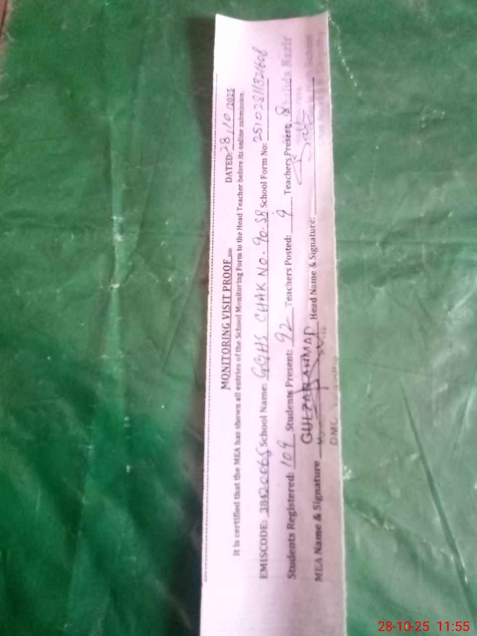 | Certified that this School was Inspected by the Undersigned MEA/DMO Today and the Information Stated Above is as Per Record. | |||||