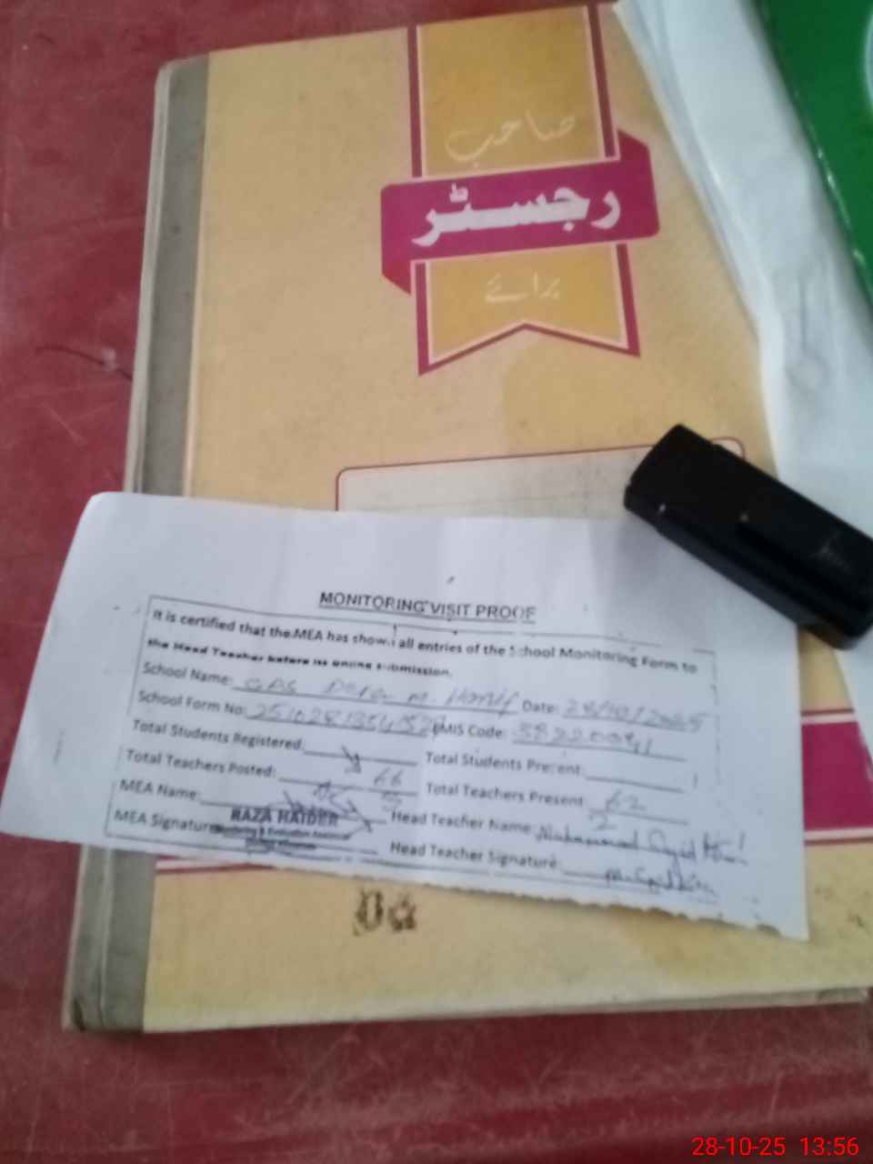 | Attendance Register | Head Teacher | MEA with School | Visit Proof |