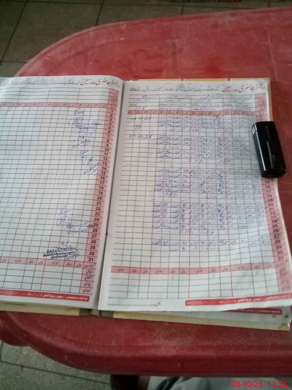 | CNIC | Full Name | Designation | R/C | Absence During Last Calender Month |