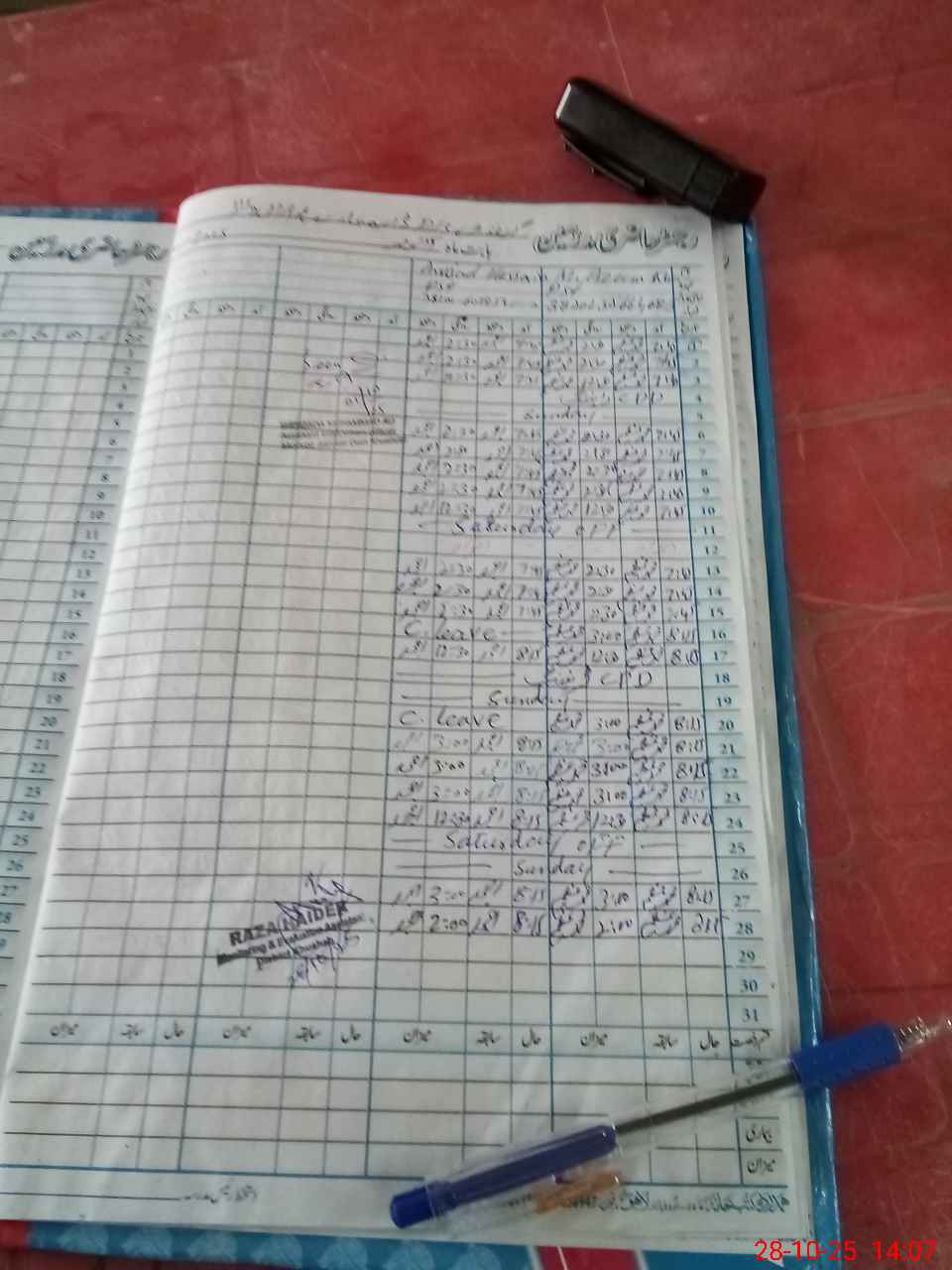 | CNIC | Full Name | Designation | R/C | Absence During Last Calender Month |