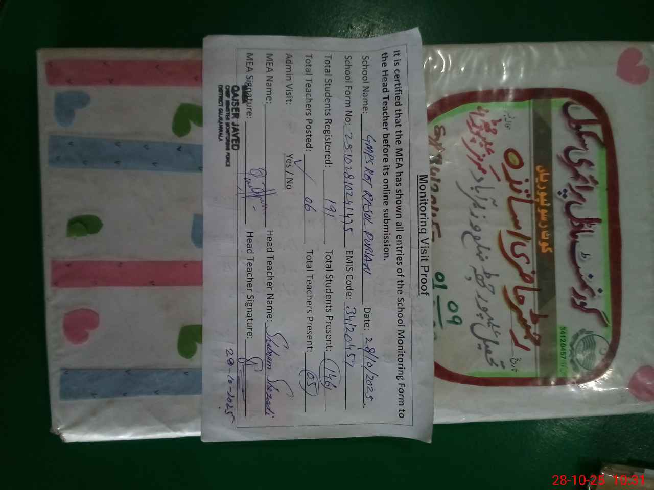 | Certified that this School was Inspected by the Undersigned MEA/DMO Today and the Information Stated Above is as Per Record. | |||||