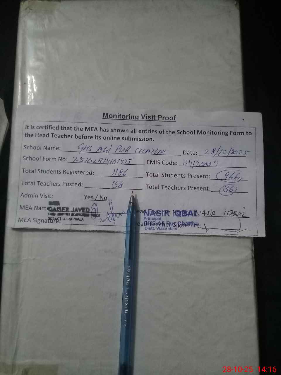 | EMIS Code: 34120009 | Name of School: GHS ALI PUR CHATHA | |||