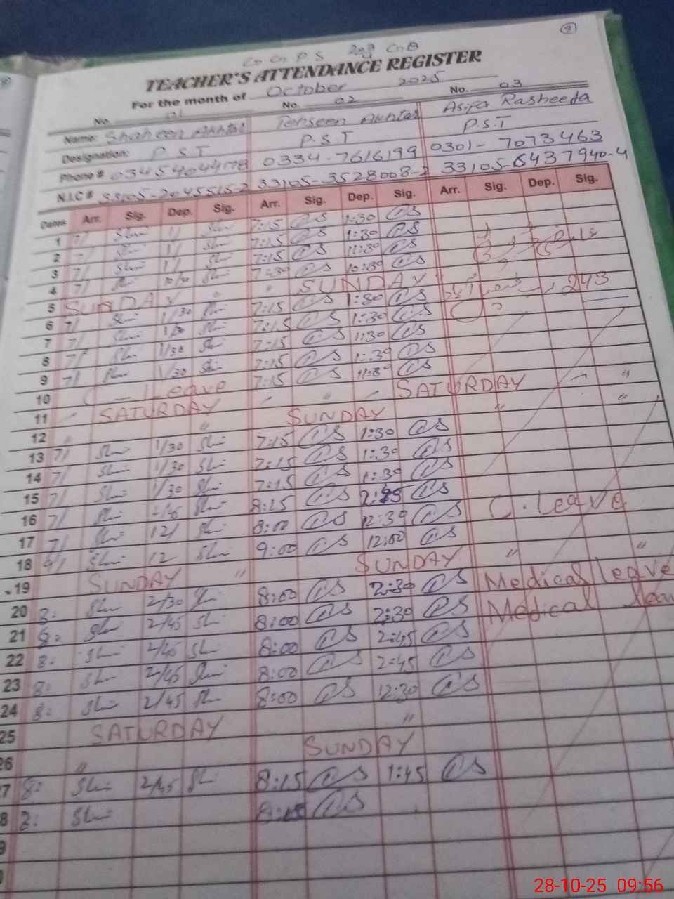 | Name: Sh**** Ak**** Designation: (School Headmaster's/Headmistress's) PST Phone/Cell Number: 03**** |