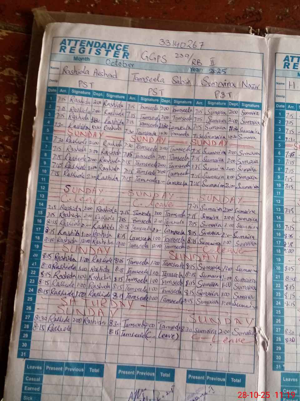 | 33**** | Su**** | PST | Regular | 0 | 0 | 0 | 0 | 0 | 0 | 0 | 0 | 0 | Casual |