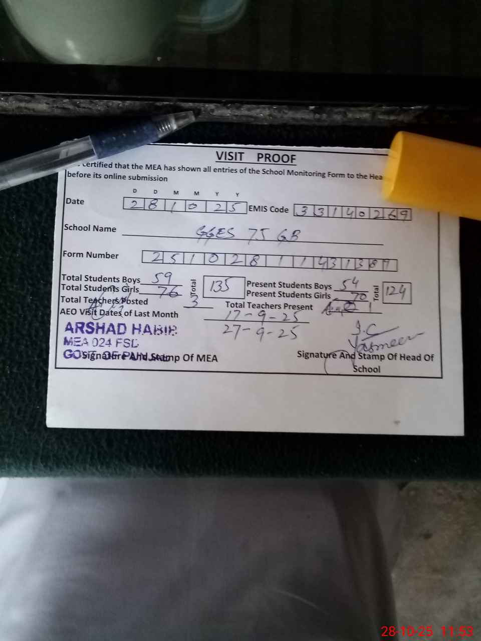 | EMIS Code: 33140269 | Name of School: GGES CHAK NO 75 GB I | |||