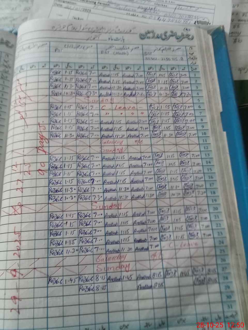 | Leave | Duty | Absent | Maternity | Medical | Ex- Pak |