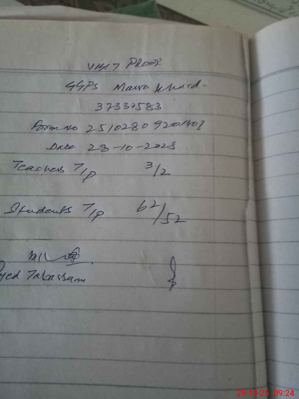 | Attendance Register | Head Teacher | MEA with School | Visit Proof |