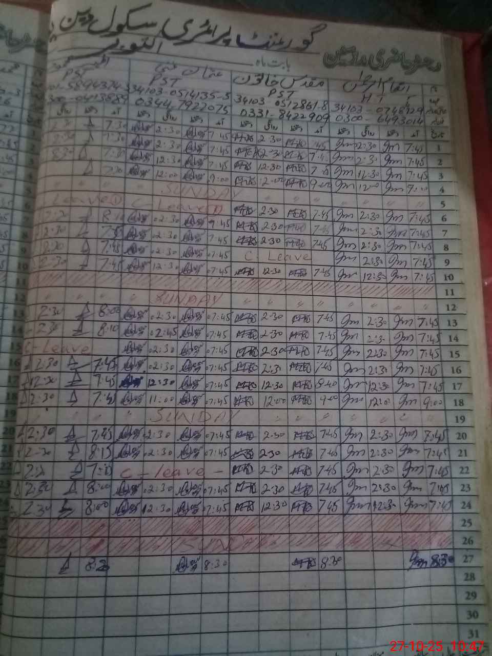 | Name: In**** UlRe**** Designation: (School Headmaster's/Headmistress's) PST Phone/Cell Number: 03**** |