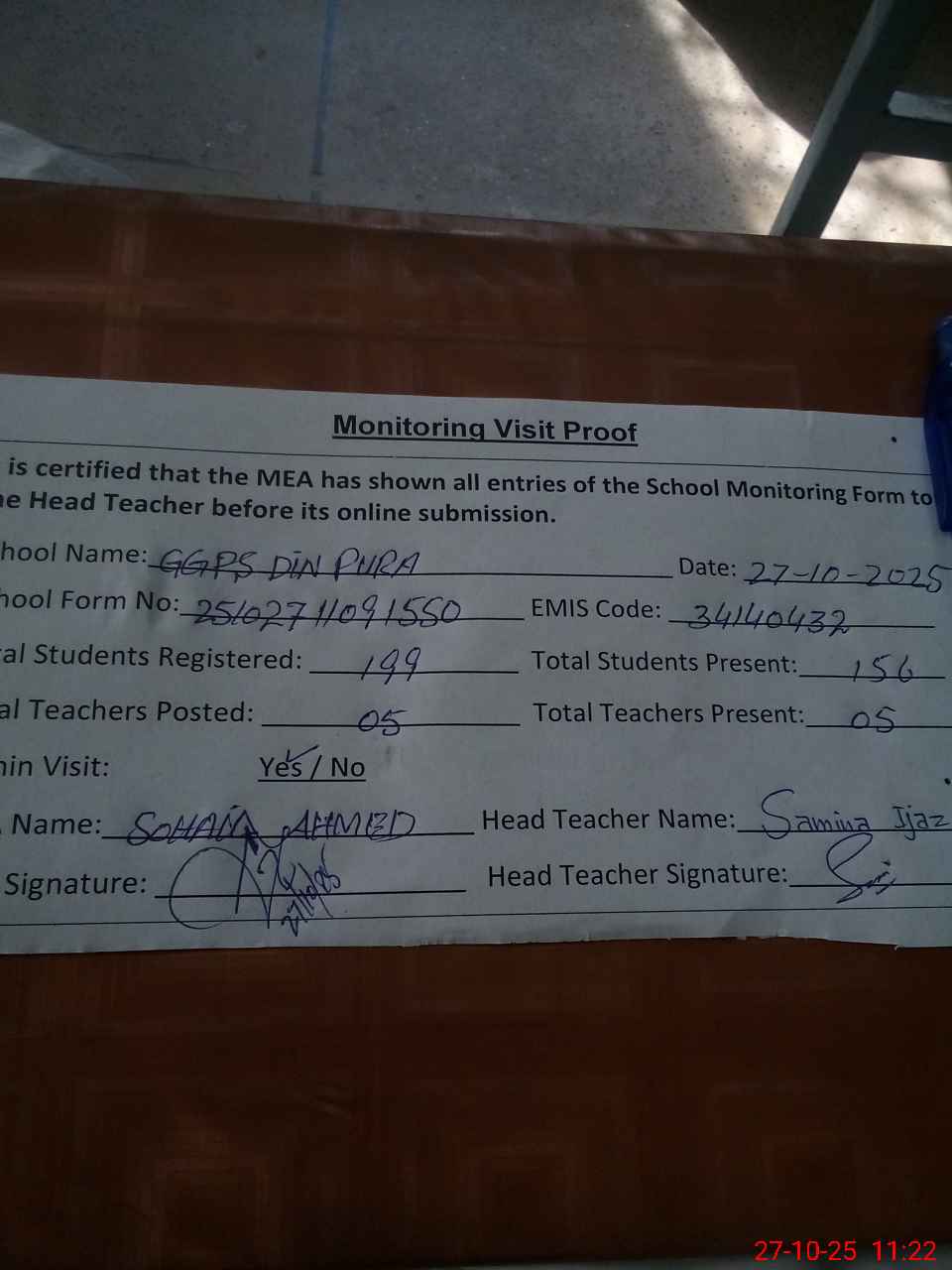 | EMIS Code: 34140432 | Name of School: GGPS DIN PURA | |||