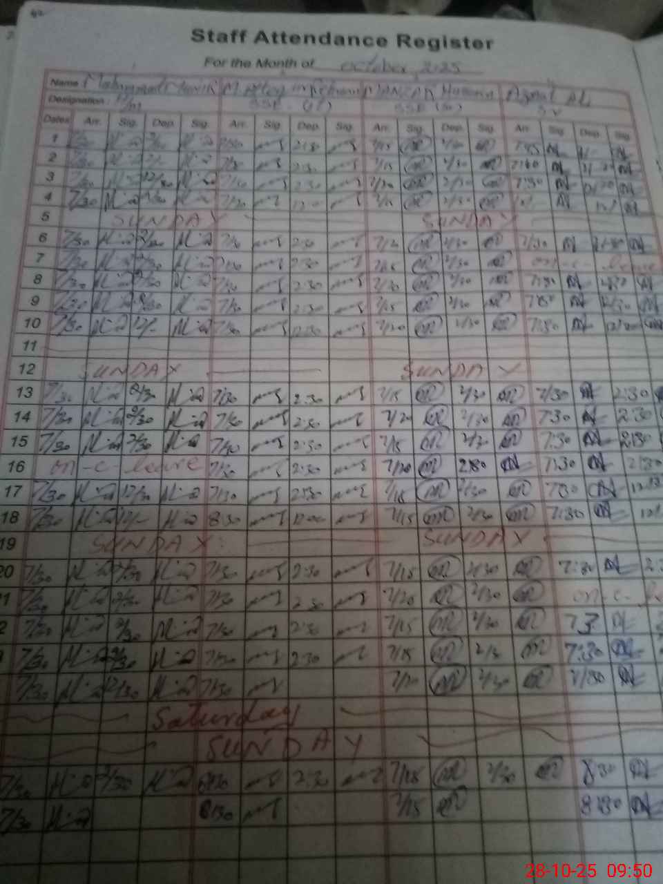 | 34**** | Sh**** Ah**** | EST(H.ECO) | Temporary | 0 | 0 | 0 | 0 | 0 | 0 | 0 | 0 | 0 | Exam Duty |