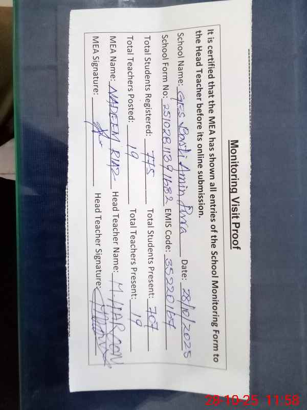 | EMIS Code: 35220167 | Name of School: GES BASTI AMIN PURA RAIWIND (EX-MCL) | |||