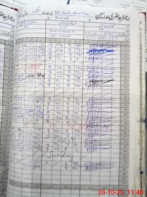 | Name: MU**** HA**** Designation: (School Headmaster's/Headmistress's) Head Master Phone/Cell Number: 03**** |