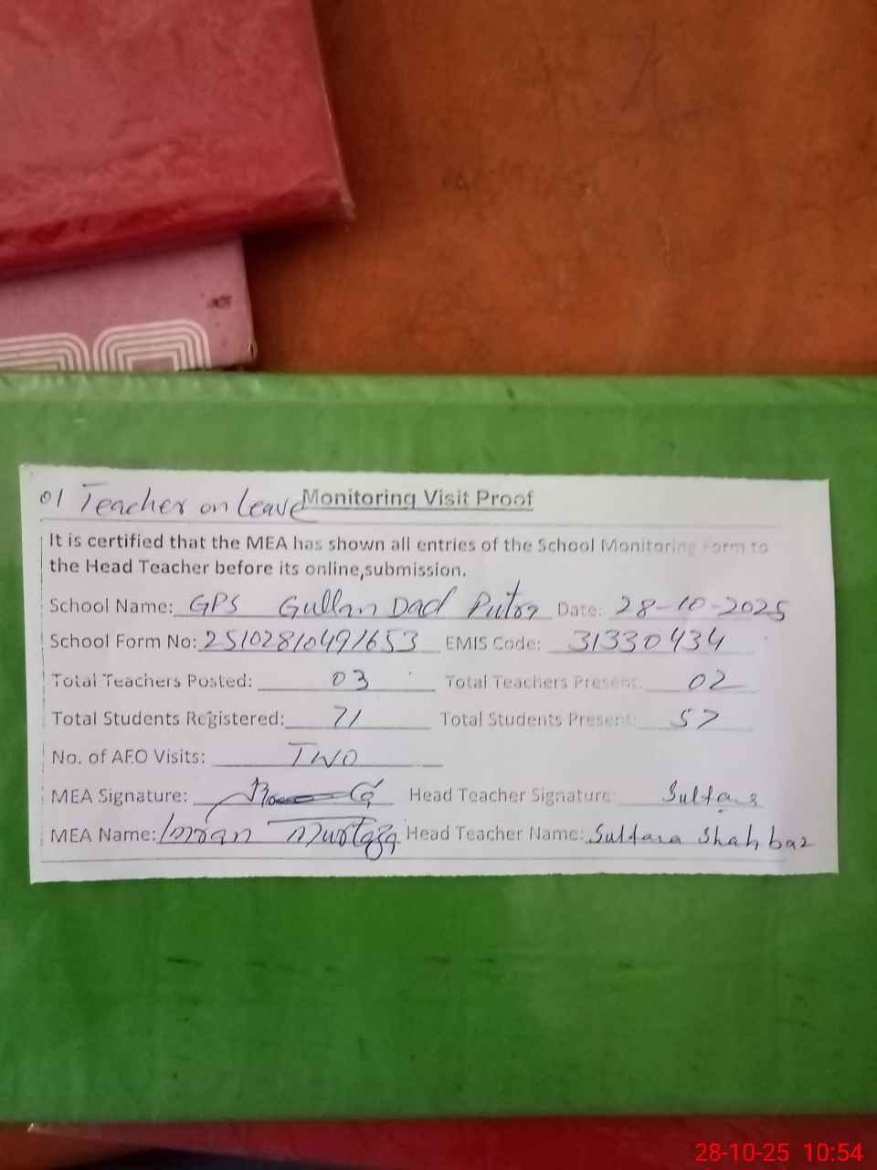 | EMIS Code: 31330434 | Name of School: GPS GULLAN DAD PUTRA | |||