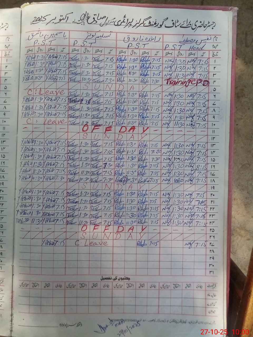 | 36**** | Ta**** Ka**** | PST | Regular | 0 | 0 | 0 | 0 | 0 | 0 | 0 | 0 | 0 | Casual |