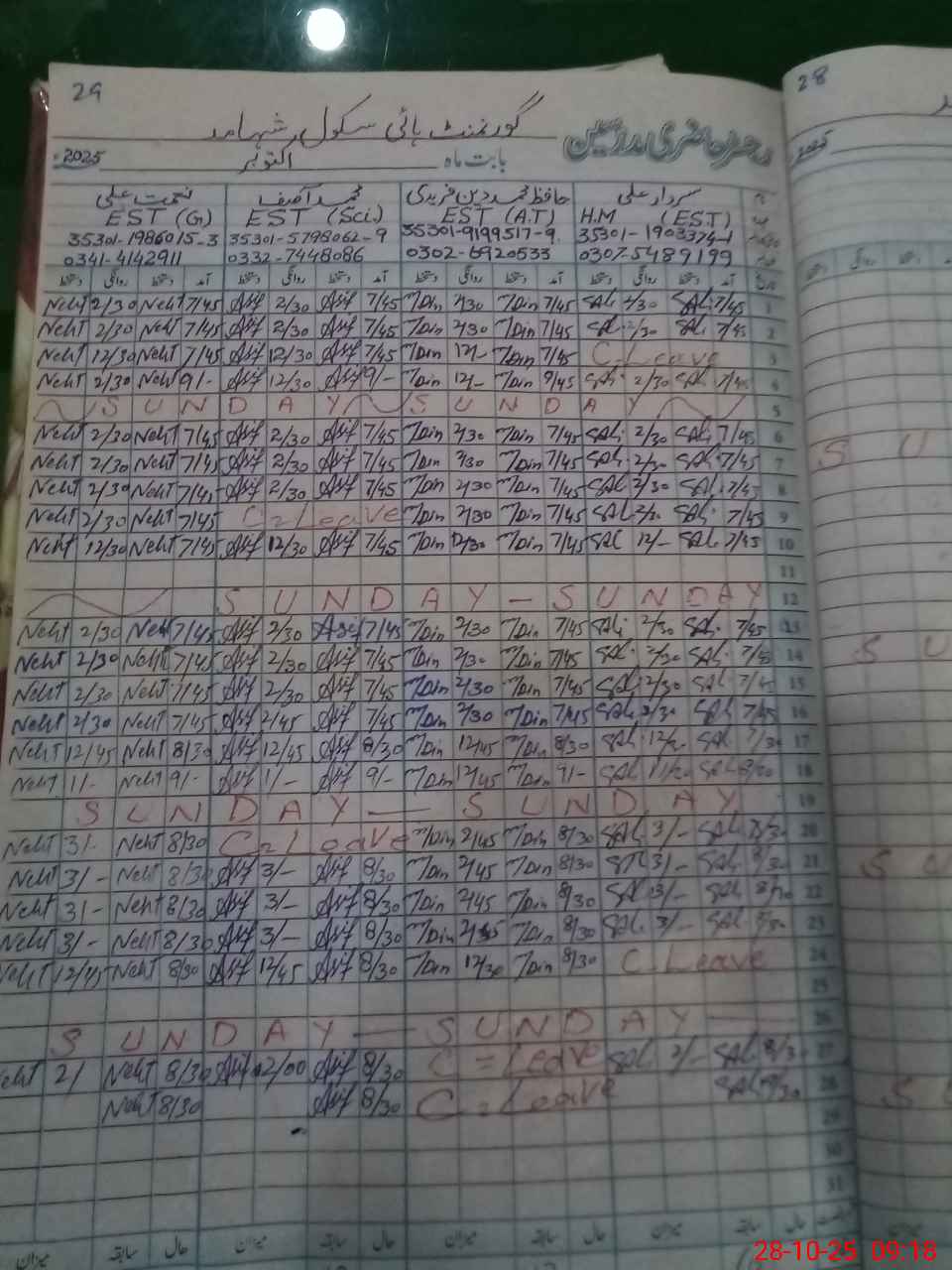 | Name: SA**** AL**** Designation: (School Headmaster's/Headmistress's) EST Phone/Cell Number: 03**** |