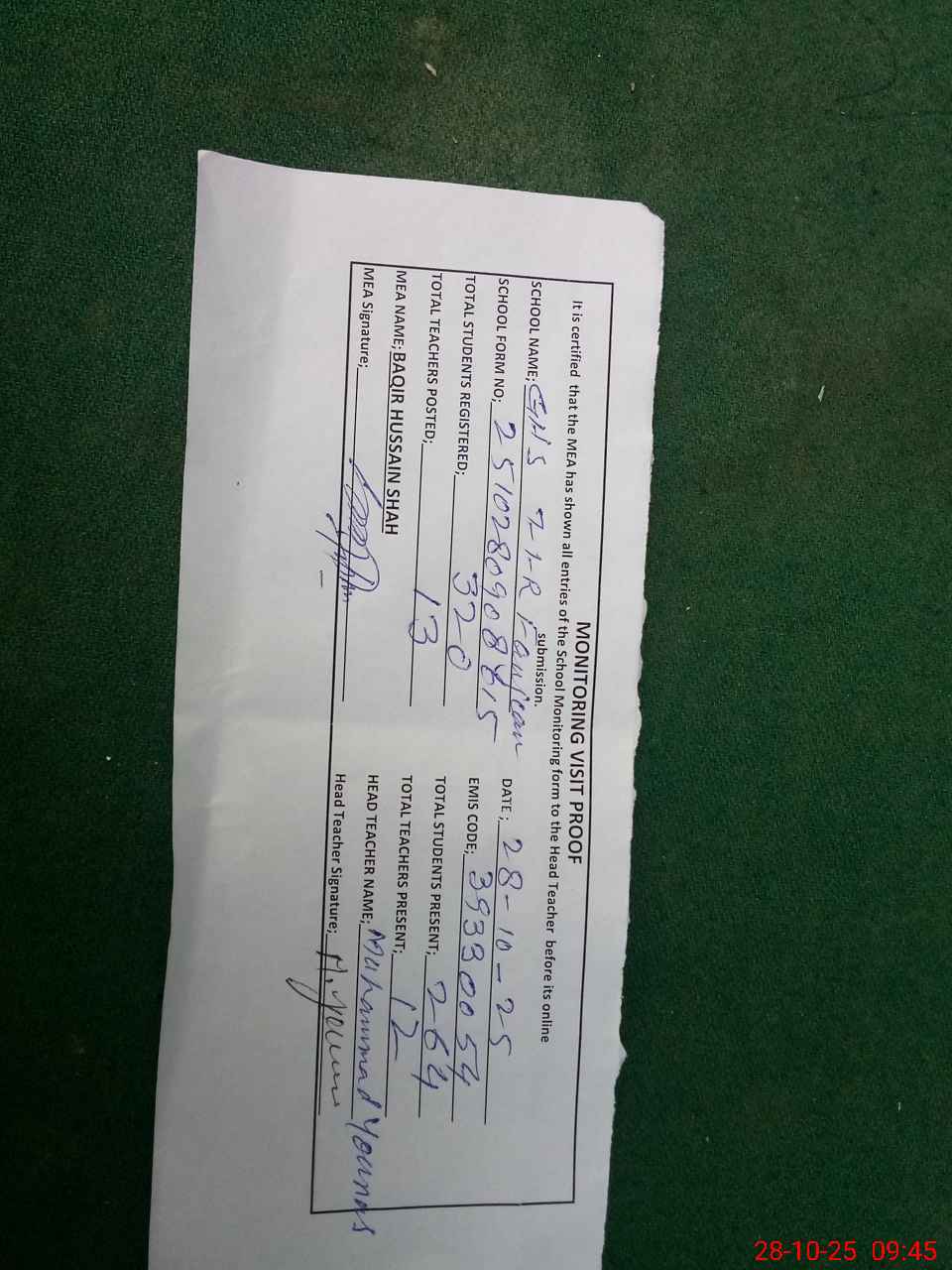 | EMIS Code: 39330054 | Name of School: GHS 7-1R FAUJIAN | |||