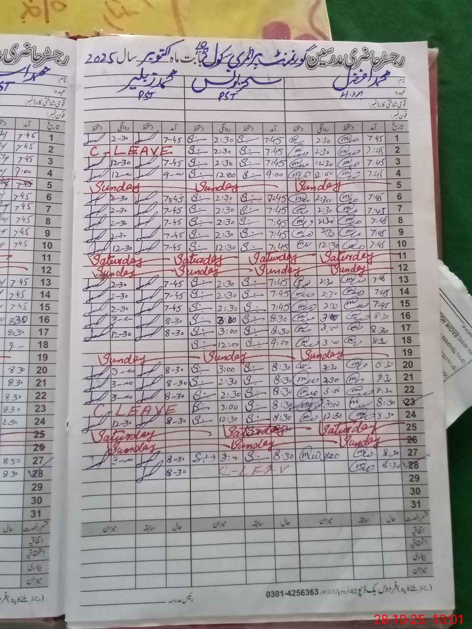 | Name: MU**** AF**** Designation: (School Headmaster's/Headmistress's) PST Phone/Cell Number: 03**** |