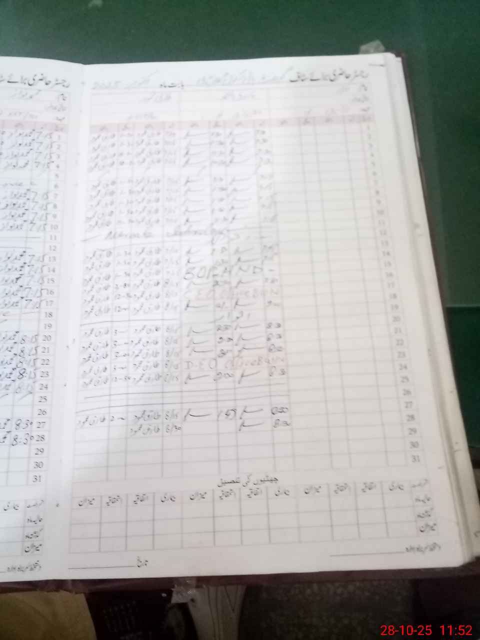 | CNIC | Full Name | Designation | R/C | Absence During Last Calender Month |