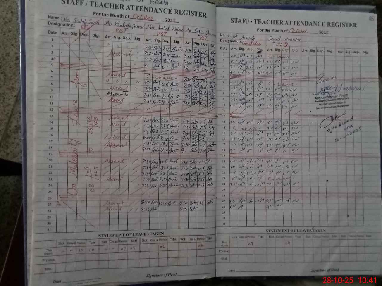 | Remarks (Use Separate Page if Required): Teacher Khalida Perveen is absent from school without leave approval from any competent authority wef 15 September 2025 | |||||