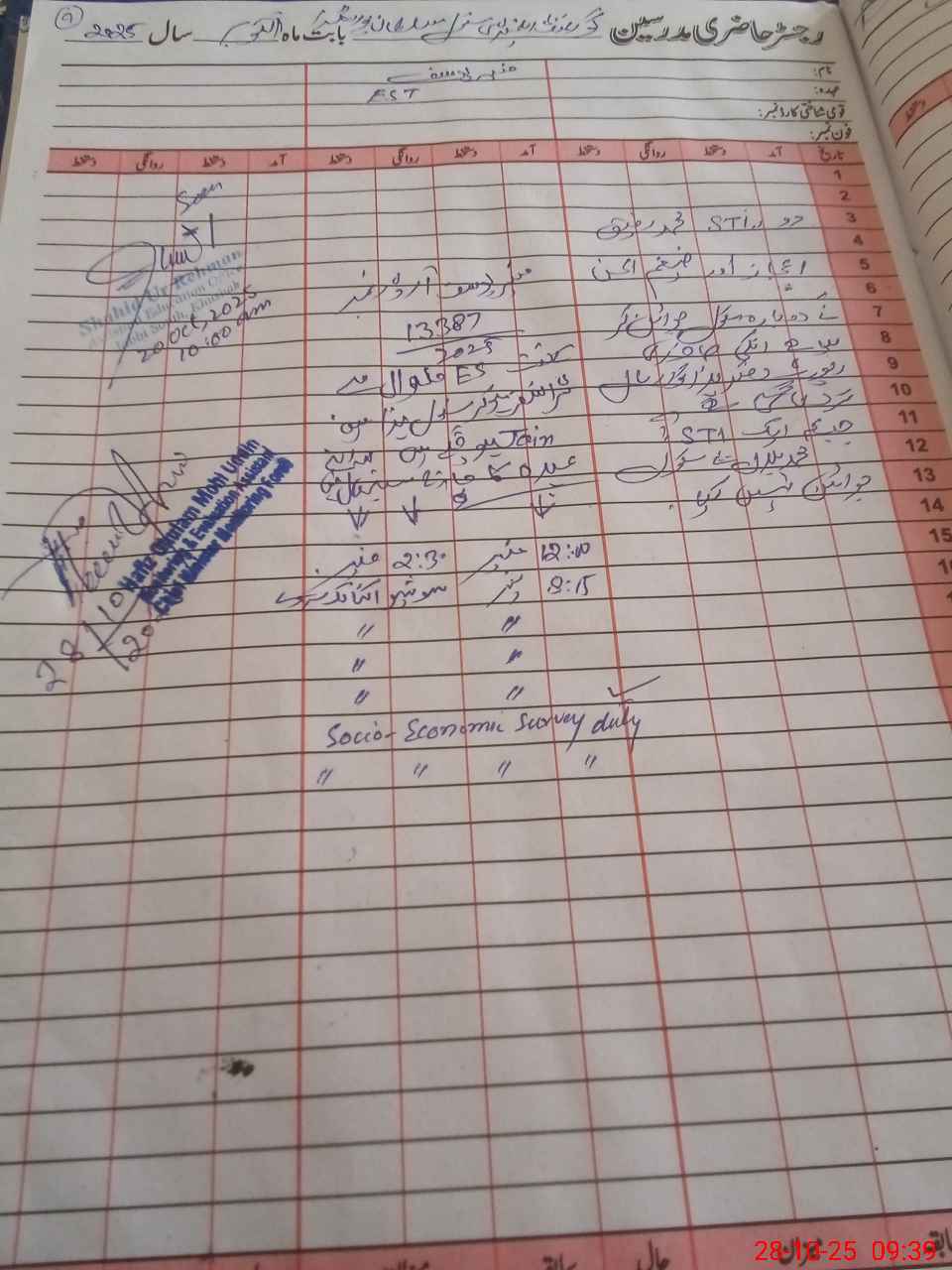 | Monitoring Date: 28-10-2025 | Start Time: 28-10-2025 09:26 AM | End Time: 28-10-2025 09:57 AM | Name of MEA: HA**** GH**** MO**** UDDI**** | |