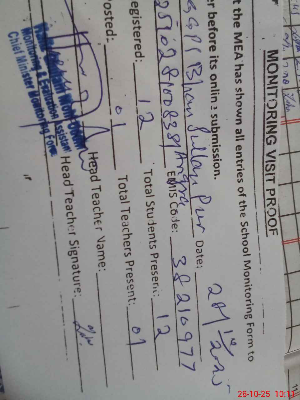 | EMIS Code: 38210977 | Name of School: GGPS BHAN SULTANPUR ANGRA HADALI | |||