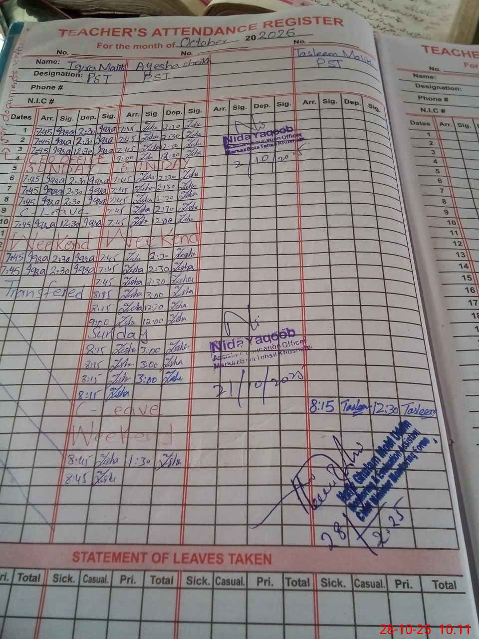| Name: Ay**** Sh**** Designation: (School Headmaster's/Headmistress's) PST Phone/Cell Number: 03**** |