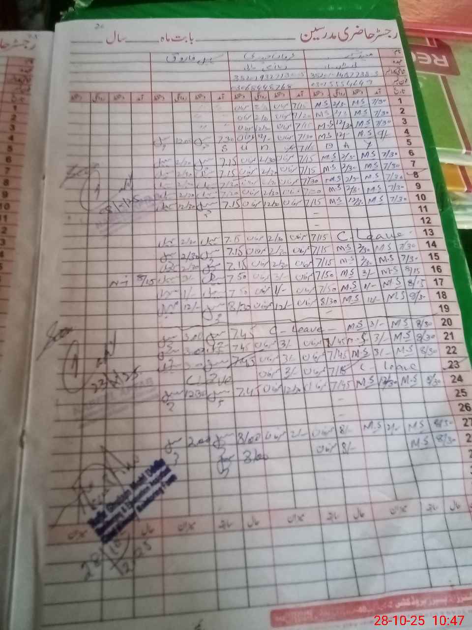 | CNIC | Full Name | Designation | R/C | Absence During Last Calender Month |