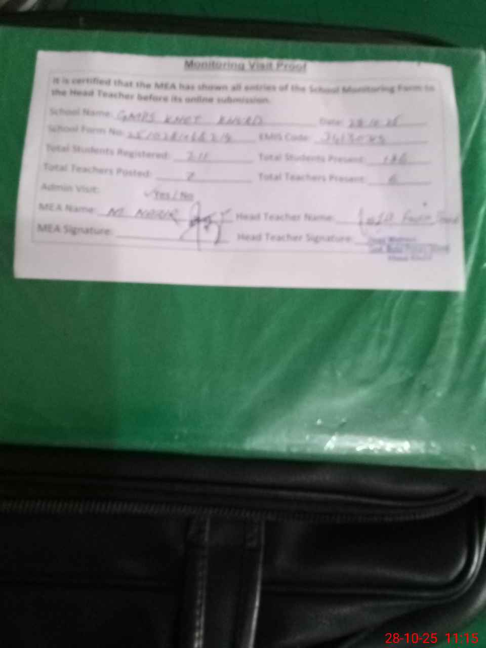 | Attendance Register | Head Teacher | MEA with School | Visit Proof |