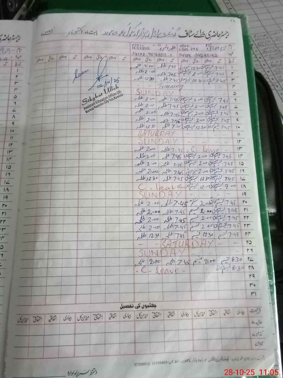 | Name: RI**** AK**** Designation: (School Headmaster's/Headmistress's) PST/PTC/JV Phone/Cell Number: 03**** |