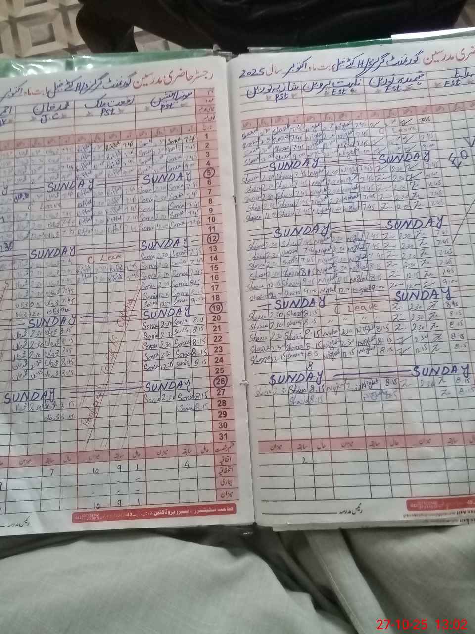 | CNIC | Full Name | Designation | R/C | Absence During Last Calender Month |