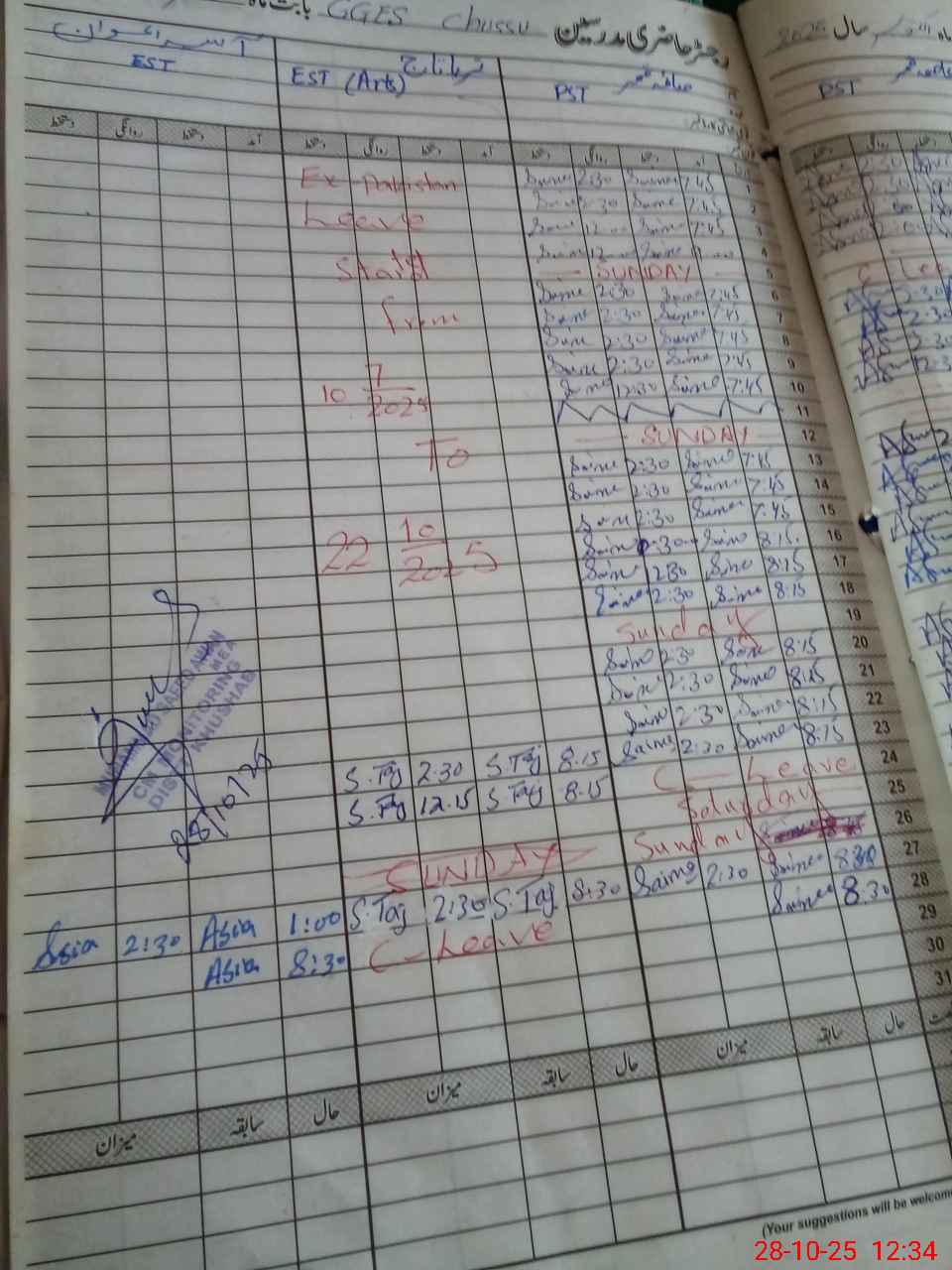 | Name: AS**** NO**** Designation: (School Headmaster's/Headmistress's) PST Phone/Cell Number: 03**** |