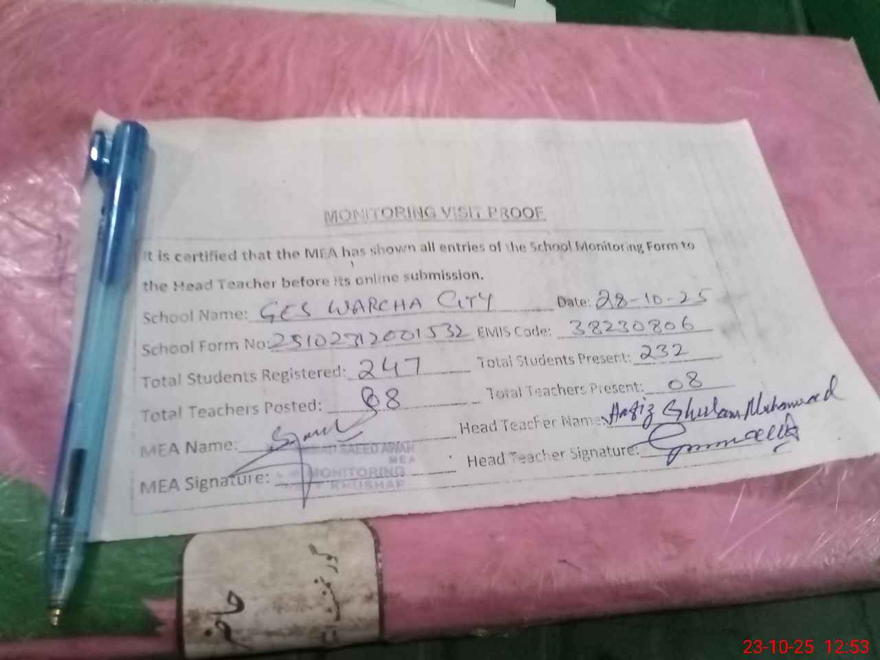 | EMIS Code: 38230806 | Name of School: GES WARCHHA CITY | |||
