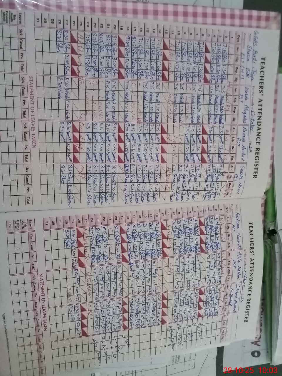 | Leave | Duty | Absent | Maternity | Medical | Ex- Pak |
