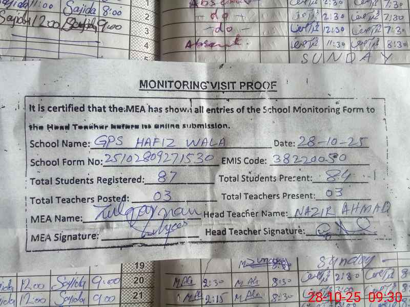 | EMIS Code: 38220050 | Name of School: GPS HAFIZ WALA | |||